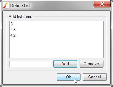 Click Ok on the Define List dialog.