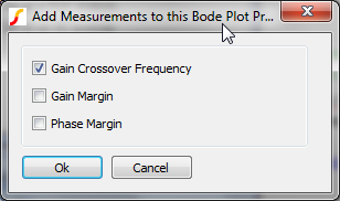 - Uncheck Gain Margin and Phase Margin, leaving only Gain