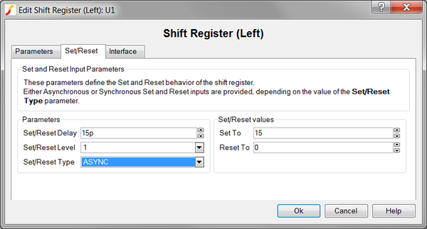 1. From the Edit Shift Register (Left) dialog box, click on the Set/Reset tab.