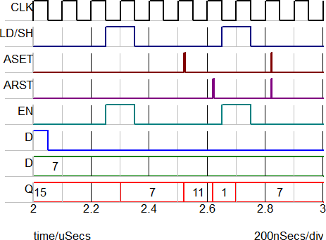 The image below shows the asynchronous set/reset behavior of the register.