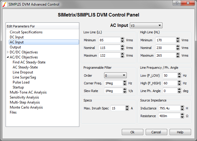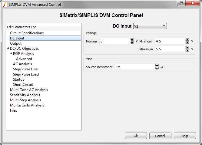 scalar values in the simulation. On this dialog, you also specify the number of DC inputs,