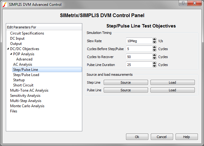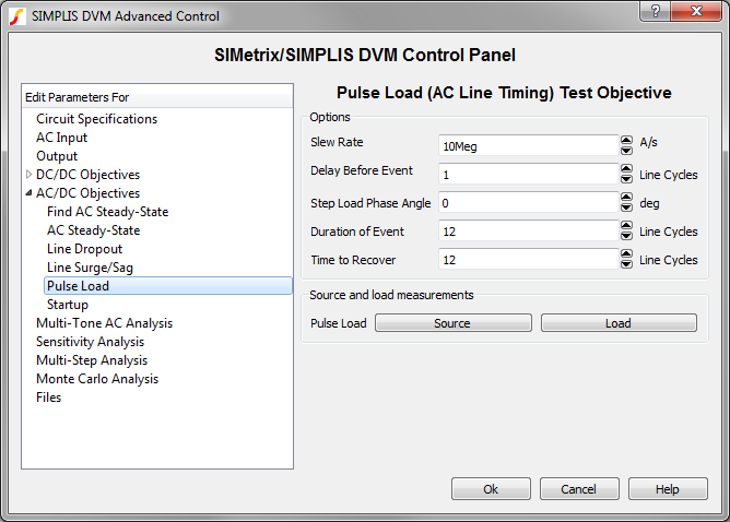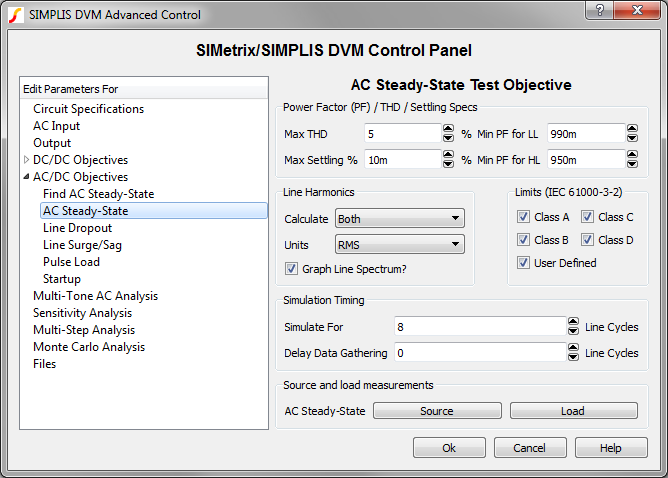 also includes specifications for the sources and loads, as well as performance