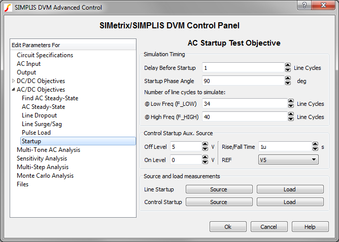 objectives startup tests will be performed; if not checked, the Startup() test