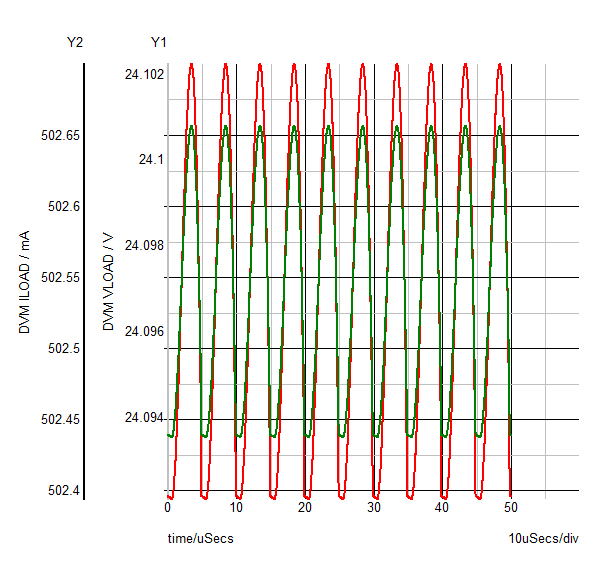 | VLOAD | AVG 24.0971 MIN 24.0921 MAX 24.1022 RMS 24.0971 PK2PK 10.1382m |