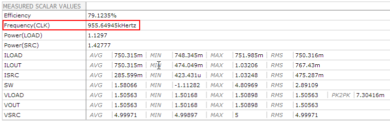 Result: The schematic is now configured to include the switching frequency measurement in the test report.