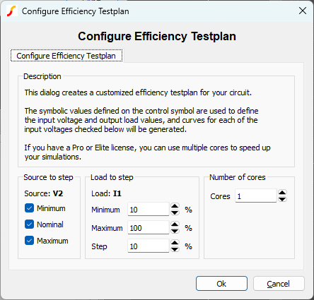 - This dialog will allow you to set the desired source voltages and load steps. The