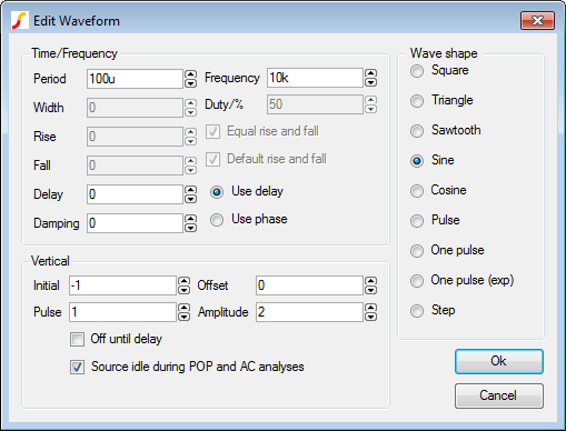 - Double click the waveform generator V3, and make the following changes: