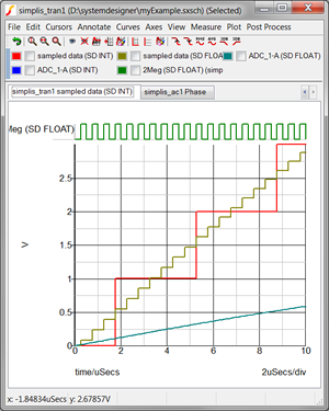 - Run the simulation from the SystemDesigner menu: SystemDesigner | Run w/ Sampled