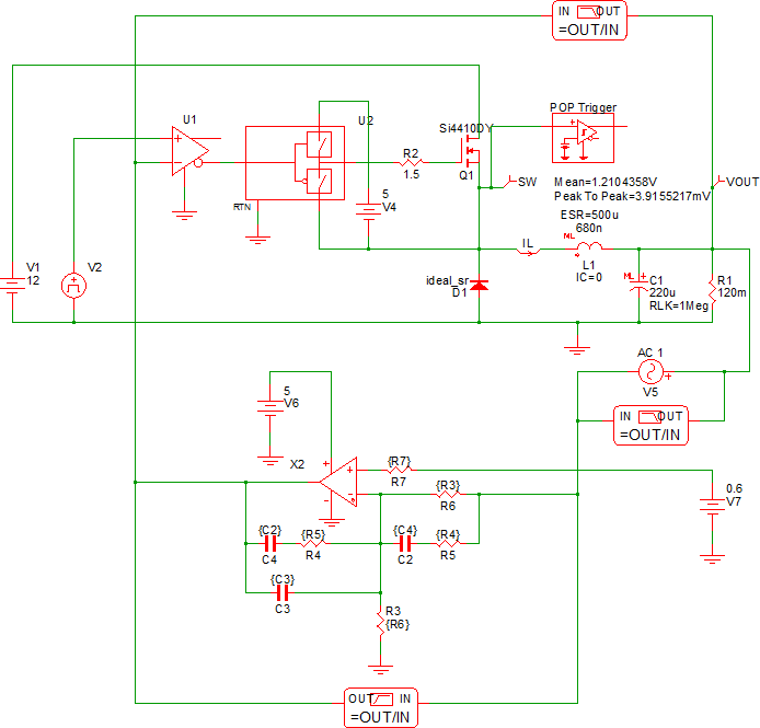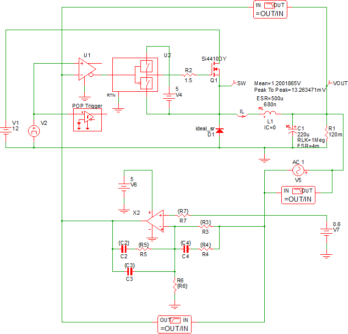 - The output capacitor in this design has no ESR. In the previous simulations this was