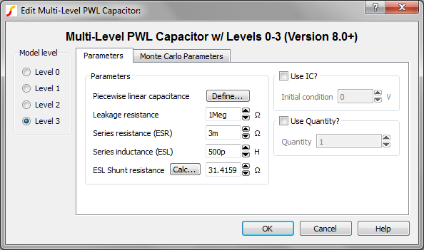 Use Quantity? 0,1,2,3 n/a If checked, the model uses the specified Quantity of capacitors in parallel.