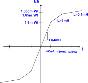 • L4: PWL Inductor for primary magnetizing inductance - includes saturation effects