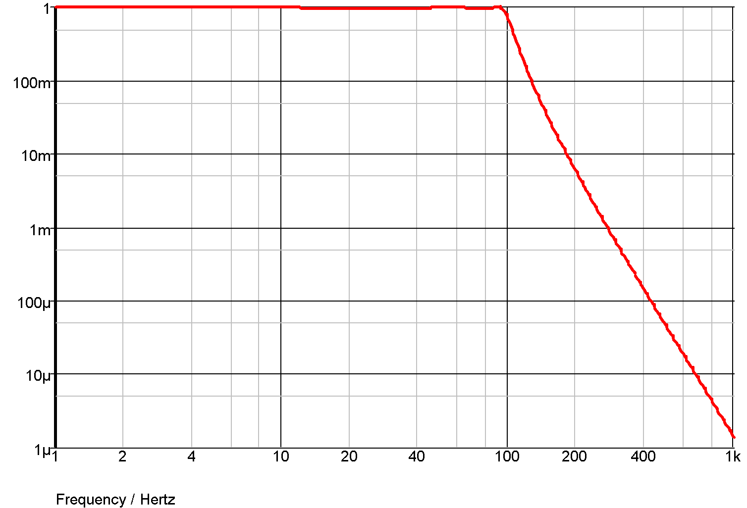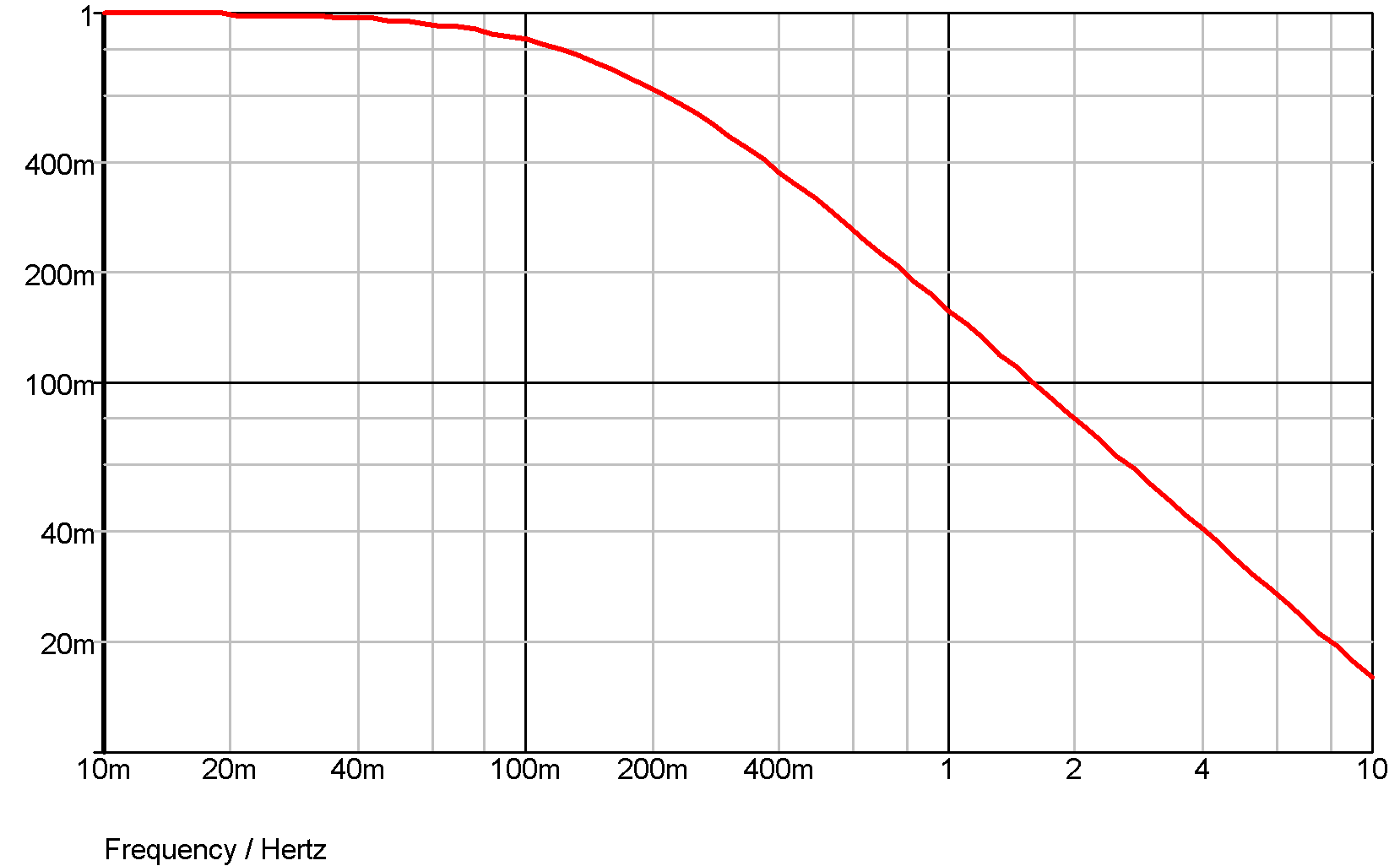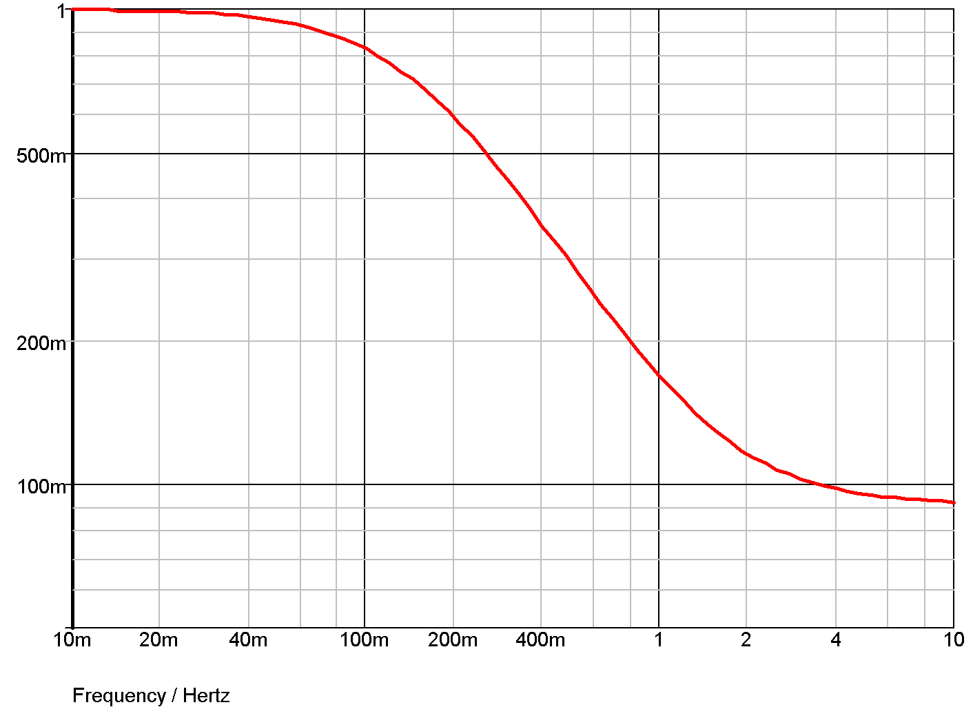 This is a simple first order roll off with a 1 second time constant as shown below