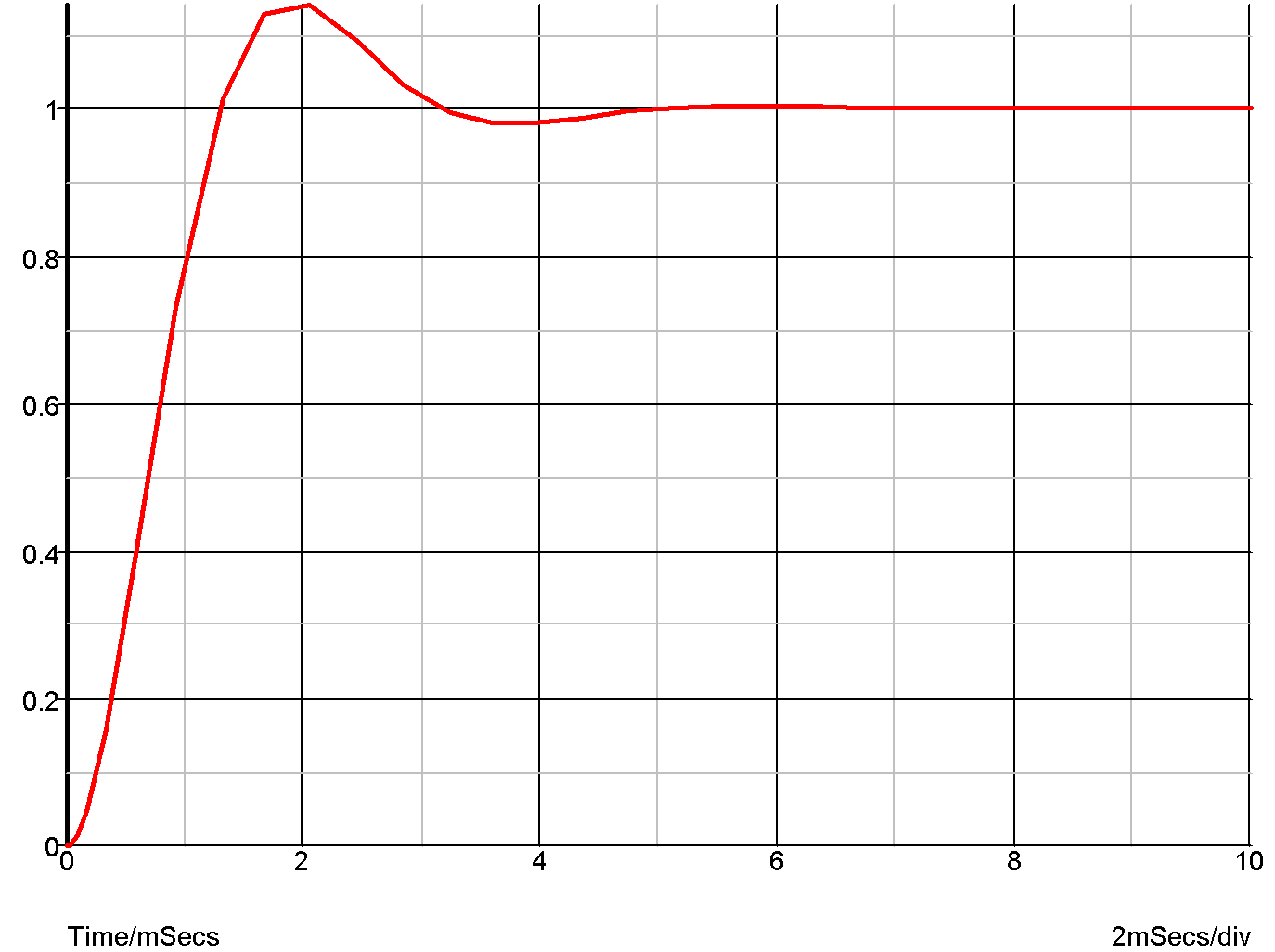 The above expression is a second order response that is slightly underdamped. The following graph shows the transient response.