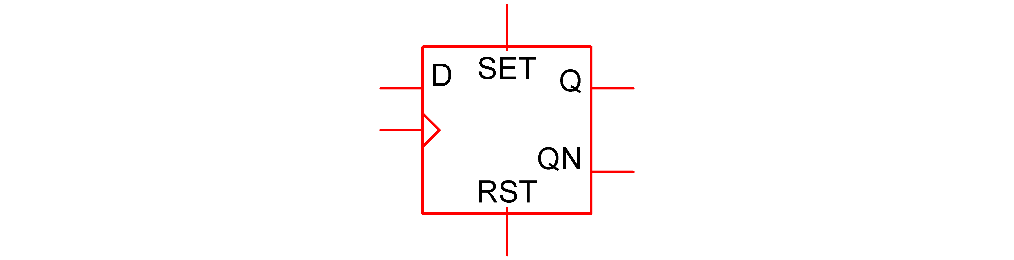 This device implements four types of edge triggered flip-flop, namely D, T (toggle), J-K and S-R. The type of flip-flop is controlled by the type parameter.