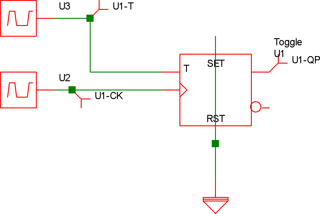 The operation of the toggle flip flop is illustrated by the following diagrams. When the T input is high, the output toggles on each rising edge of the clock. If the T input is UNKNOWN the output will be UNKNOWN.