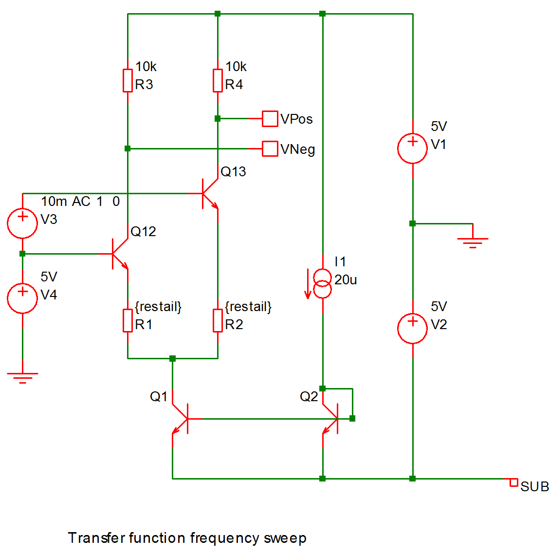 Perform transfer function frequency sweep on the following circuit