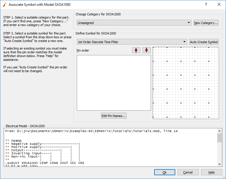 2. Associate the model(s) with a schematic symbol. This process is often automatic and you don't need to do anything - see explanation in the Overview. If this is necessary, you will be prompted for the information required. See Placing New Model on Schematic.