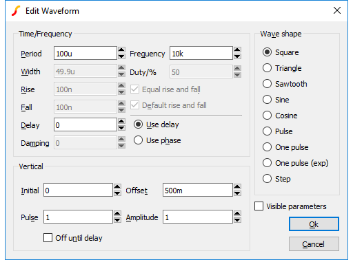| RISE | Rise time i.e time to change from V2 to V1 | PERIOD/1000 | No |