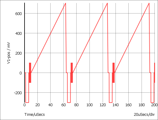 PWLS REPEAT FOREVER + 0 0 1.65u 0 1.75u -0.3 6.35u -0.3 6.45u 0 7.3u 0 + SIN FREQ=4.43Meg CYCLES=10 PEAK=0.1 END + 10u 0 63u 0.7 64u 0 + ENDREPEAT