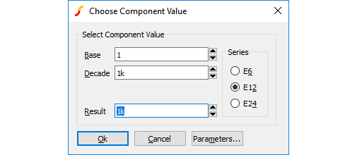 Press Parameters... button to edit additional parameter associated with the device such as temperature coefficients (TC1, TC2). Refer to device in the Simulator Reference Manual for details of all device parameters.