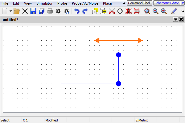 To place a line based annotation, use the menu link, then click on the schematic where you want the annotation to start and drag to where you want the annotation to end. The annotation can be moved by clicking on the annotation then dragging it. One end of the annotation can be moved by rectangle selecting one end, so that a cross is shown on the annotation like in the figure below, then clicking on the cross and dragging it to where you want that end to now be placed.