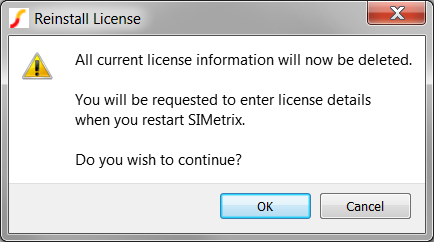 - Click OK on the Reinstall License dialog and close and restart