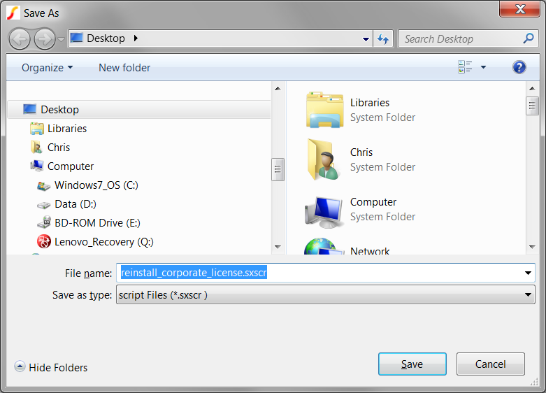 reinstall_corporate_license.sxscr from your Desktop to the