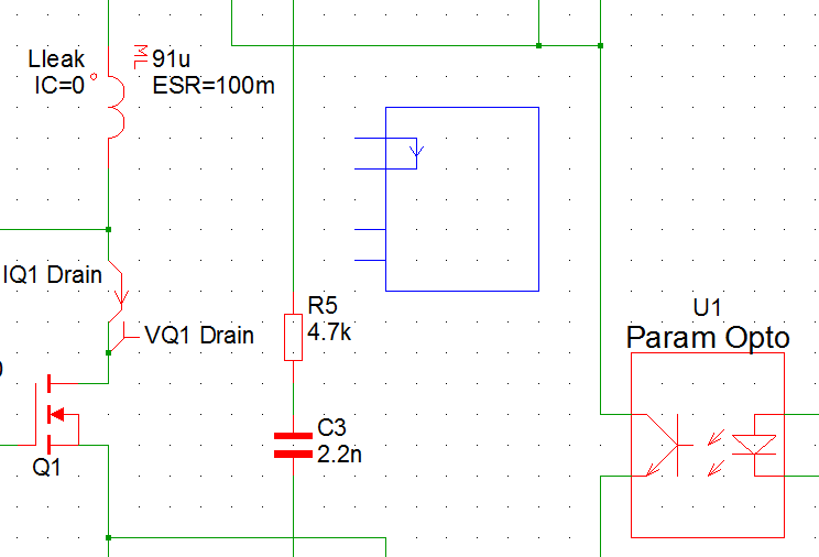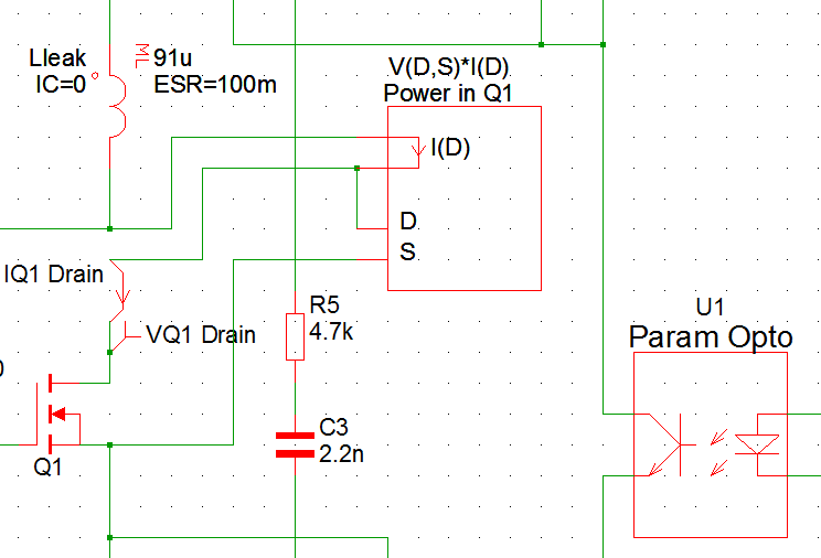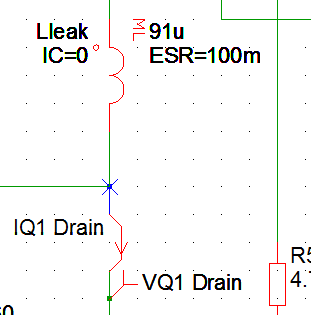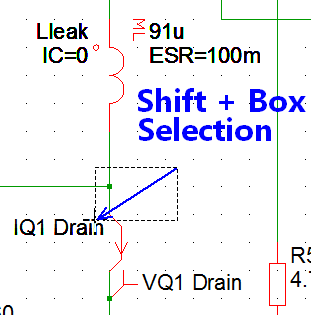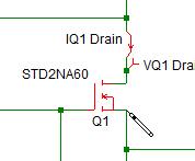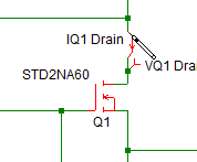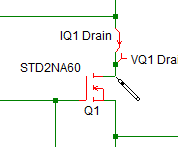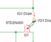 - On the schematic, left-click on the drain connection of the MOSFET Q1: