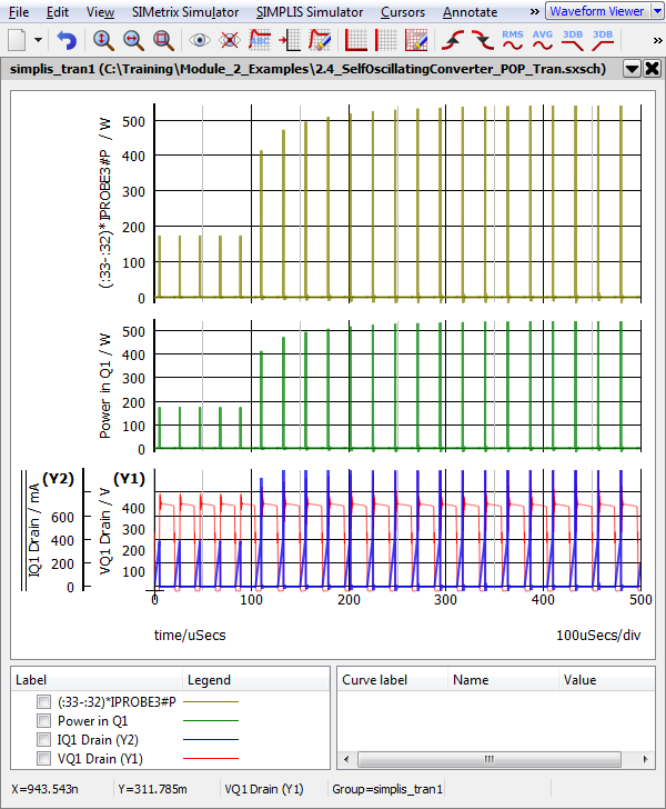2.4_SelfOscillatingConverter_POP_Tran.sxsch opened, and with the