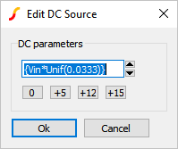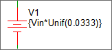For each Monte Carlo step, the Gauss(0.05) function will return a value within a Gaussian distribution, which is then multiplied by the nominal value and the resistor is assigned this numerical result. In the next exercise you will edit the value of the input voltage source, V1 to include a statistical distribution.