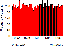 Therefore, every histogram will require a function to operate on the voltage or current, and this function must return a single scalar value for each Monte Carlo step. For the above mentioned example, the function used to return the average value of a voltage or current from a time-domain simulation is Mean1(). For this example you will plot the converter switching frequency using the Frequency() function.