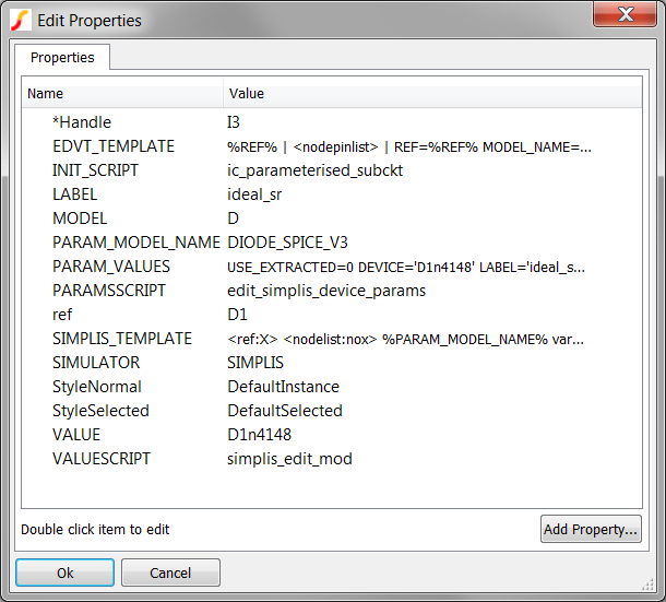 The netlisting process was described in section 3.0.1 What Happens When You Press F9?. In that topic, the REF, MODEL, TEMPLATE and SIMPLIS_TEMPLATE properties were covered in some detail. The SIMPLIS_TEMPLATE property was covered in detail in the 3.0.2 What Actual Device is Simulated in SIMPLIS? topic. Several other special symbol properties exist: