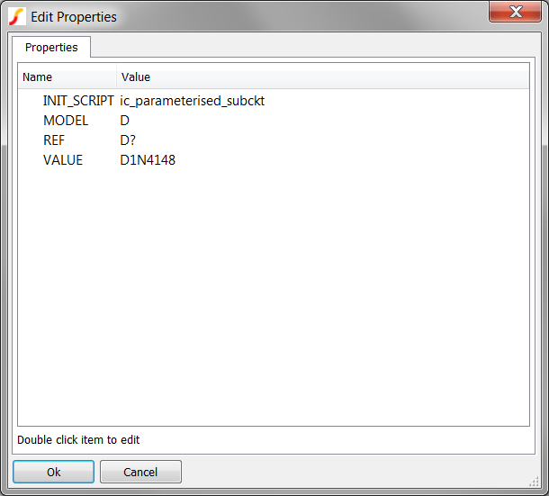 As you can see, the instantiated version of the symbol contains many more properties than the library version of the Junction Diode symbol. The additional properties re-purpose the Junction Diode symbol for use with the SIMPLIS simulator. In this case, the symbol is modified to call a subcircuit model and to pass parameters into that model.