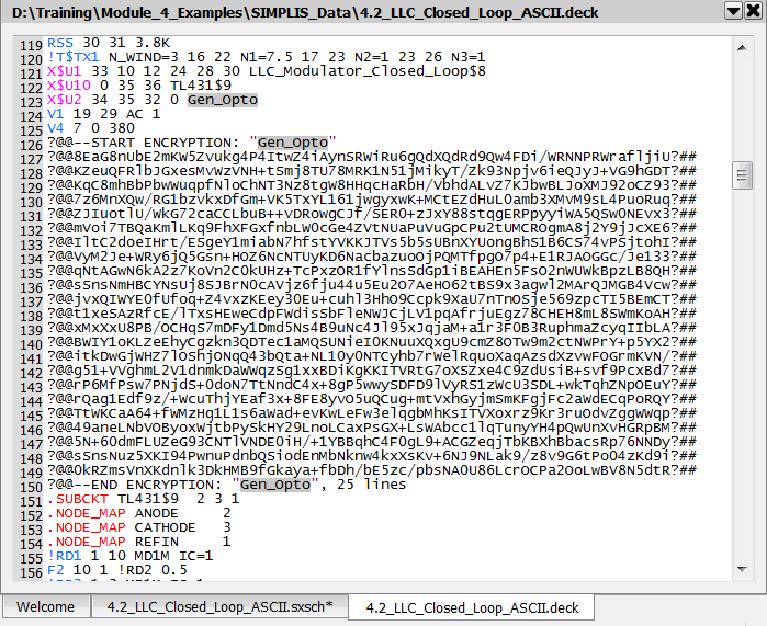 3. Paste the copied text in the command (F11) window below the .include Gen_Opto_encrypted.lb statement that you added in the second exercise.