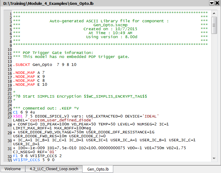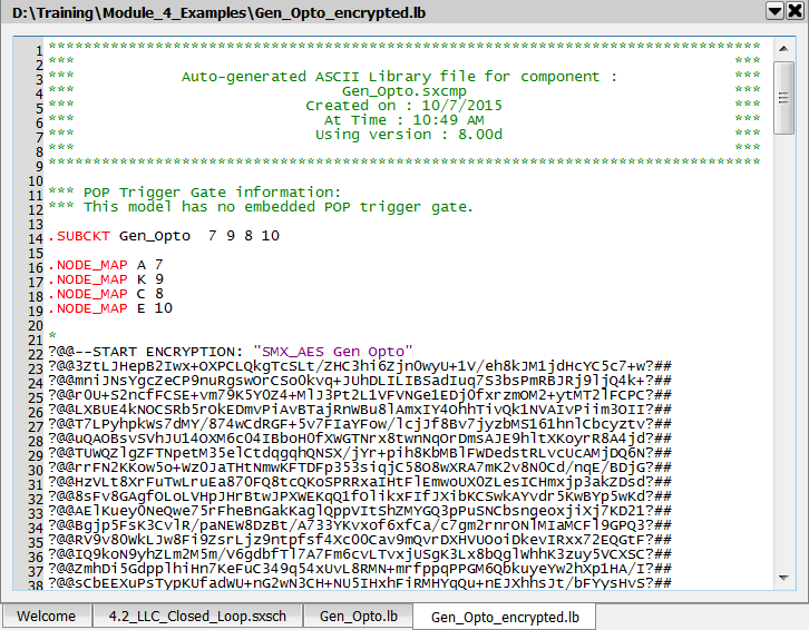 Result: The encrypted model for the Gen_Opto.sxcmp schematic component opens in the netlist editor.