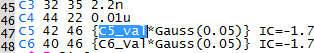 | {C5_val*Gauss(0.05)} | An expression using a single parameter and a probability distribution function |