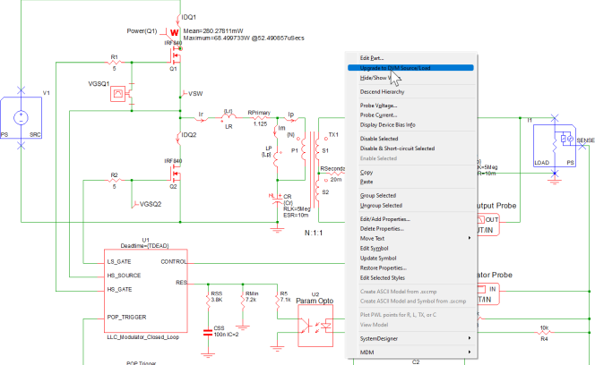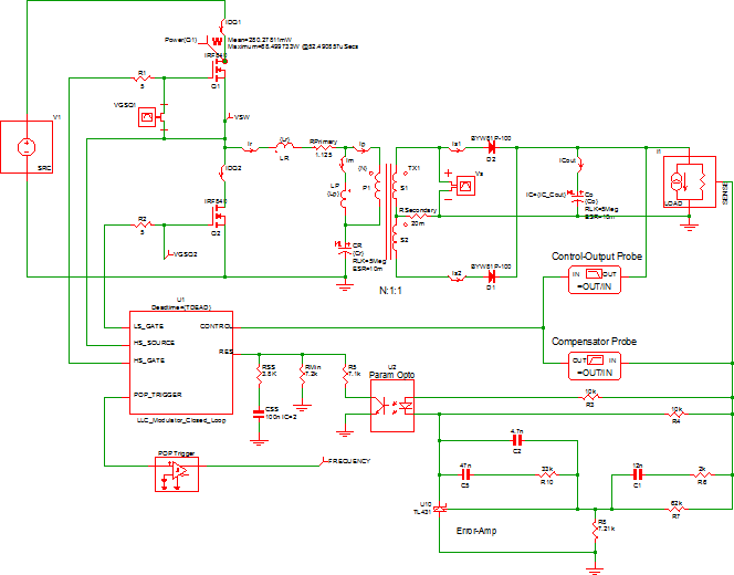 - Open the apps_d_0_llc_converter_efficiency.sxsch.