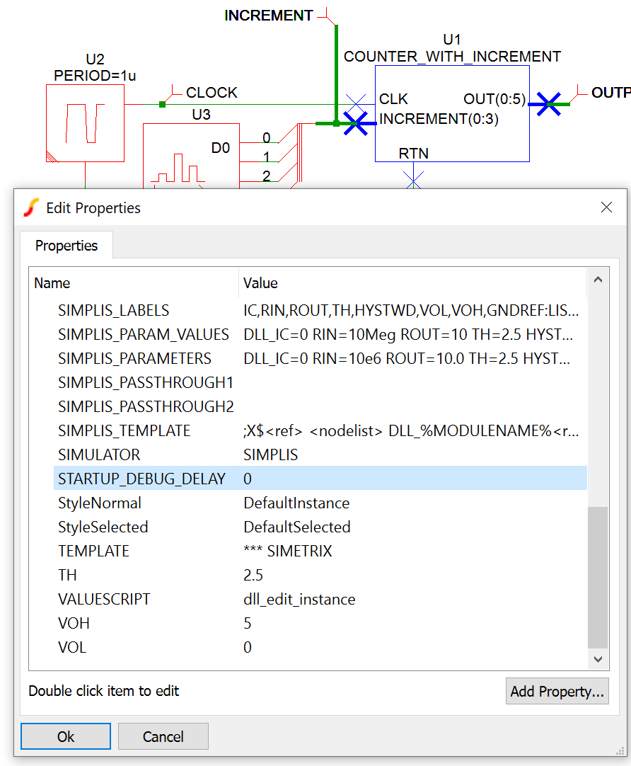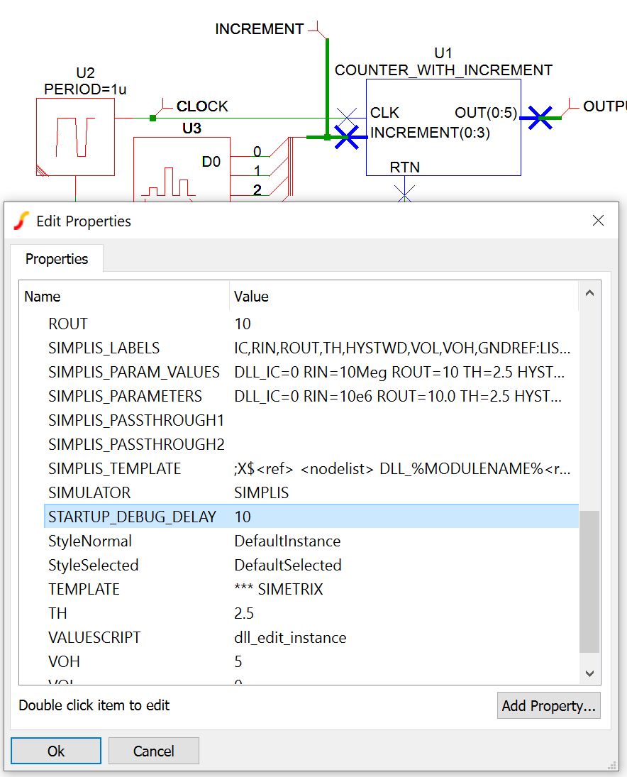 if( IsDebuggerPresent() )block, just setting the path to the "Debug" DLL is not sufficient to cause the breakpoint to be tripped, the debugger needs to be attached. While it is possible to attach the debugger mid-simulation, it would make it difficult to debug the setup and set_initial_condition functions. To address this, it is required to specify non-zero value for the STARTUP_DEBUG_DELAY property in order to get. This value is an integer representing the number of seconds that SIMPLIS will pause before launching the first setup function for any DLL-defined Digital Devices present in the circuit. When If multiple devices specify different values, the largest value will be used.