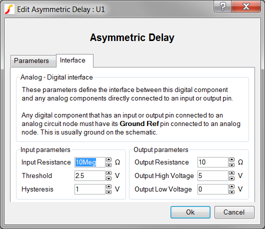 | Ground Ref | Determines whether or not a device has a ground reference pin. Any digital component that has an input or output pin connected to an analog circuit node must have its Ground Ref pin connected to an analog node. This is usually the ground on the schematic. |