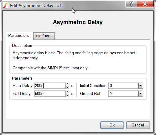 The test circuit used to generate the waveform examples in the next section can be downloaded here: simplis_022_asymmetricdelay_example.sxsch.