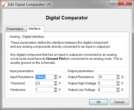 | Ground Ref | Determines whether or not a device has a ground reference pin. Any digital component that has an input or output pin connected to an analog circuit node must have its Ground Ref pin connected to an analog node. This is usually the ground on the schematic. |