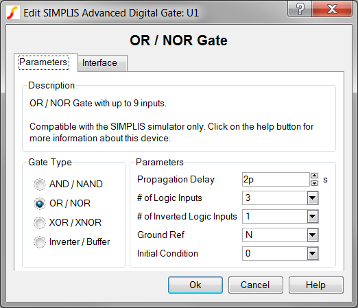 1. From the Edit OR/NOR Gate dialog box, click on the Interface tab.
