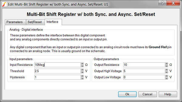 | Ground Ref | Determines whether or not a device has a ground reference pin. Any digital component that has an input or output pin connected to an analog circuit node must have its Ground Ref pin connected to an analog node. This is usually the ground on the schematic. |