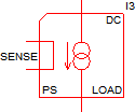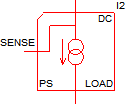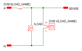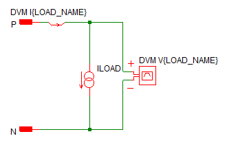 The DC Current Load subcircuit models a constant current load. Unlike the Resistive Load, the DC Current Load uses a pure current source.