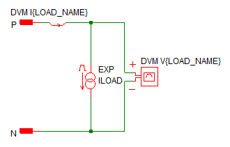To set any managed DVM load to a Single Current Pulse w/ Exponential Decay subcircuit, place an Exp() testplan entry in the Load column.