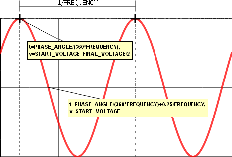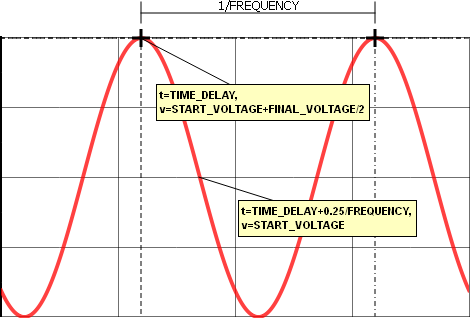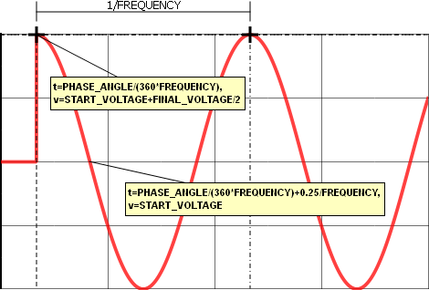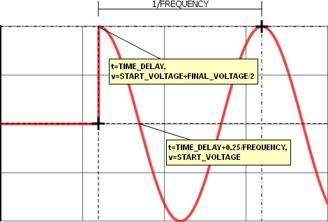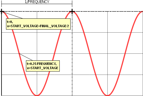 Since the TIME_DELAY parameter is set to zero, the waveform begins with the START_VOLTAGE + FINAL_VOLTAGE divided by 2 at t=0.