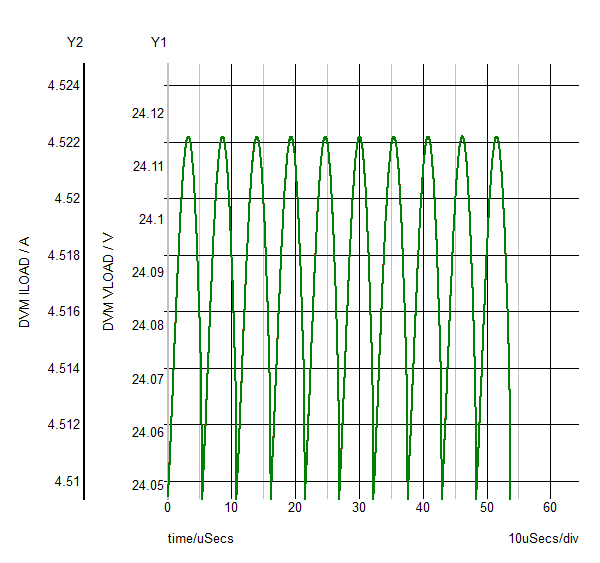 Min_VLOAD PASS: Min. Output1 Voltage (24.0472) is greater than or equal to Min. Output1 Voltage Spec (22.8)
