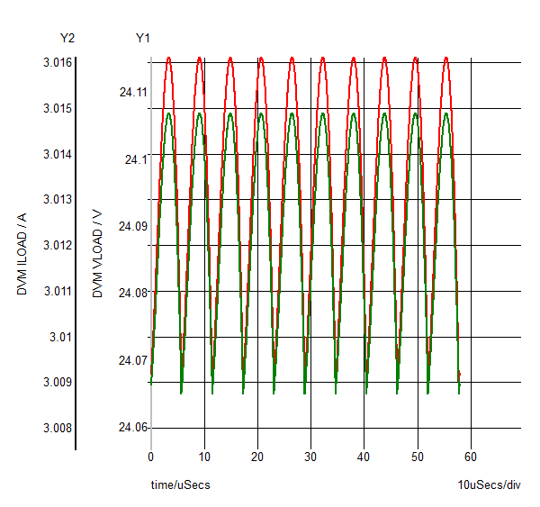 | VLOAD | AVG 24.0963 MIN 24.0664 MAX 24.115 RMS 24.0963 PK2PK 48.6869m |