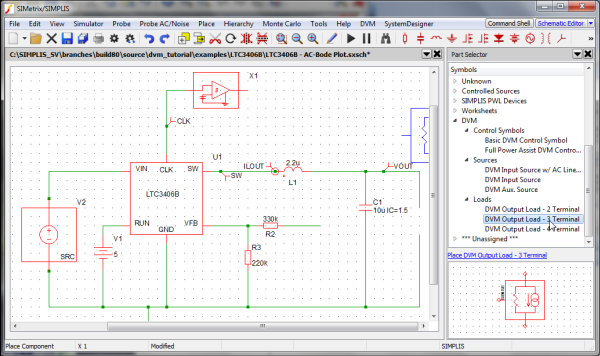 2. To open the schematic, double click the LTC3406B - DVM ADVANCED.sxsch file or drag that file into the SIMetrix/SIMPLIS Command Shell.