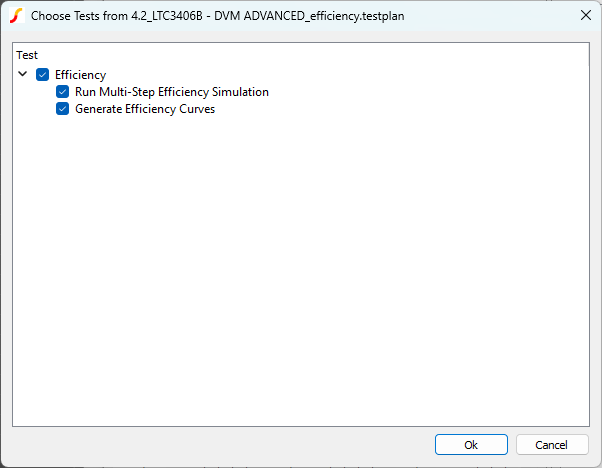 - To run all tests in the testplan, check the Efficiency checkbox.